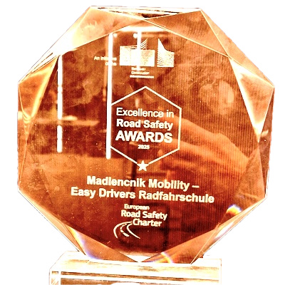 Die Europäische Kommission hat Madlencnik Mobility e.U. mit der Marke EASY DRIVERS Radfahrschule im Rahmen der European Road Safety Charter ausgezeichnet. Bei der Preisverleihung in Brüssel wurden die wirksamsten Verkehrssicherheitsinitiativen Europas geehrt – von Technologie bis Bildung. Unser Projekt wurde in der Kategorie „Older People“ prämiert. Mehr zur Auszeichnung erfahren Sie hier.
